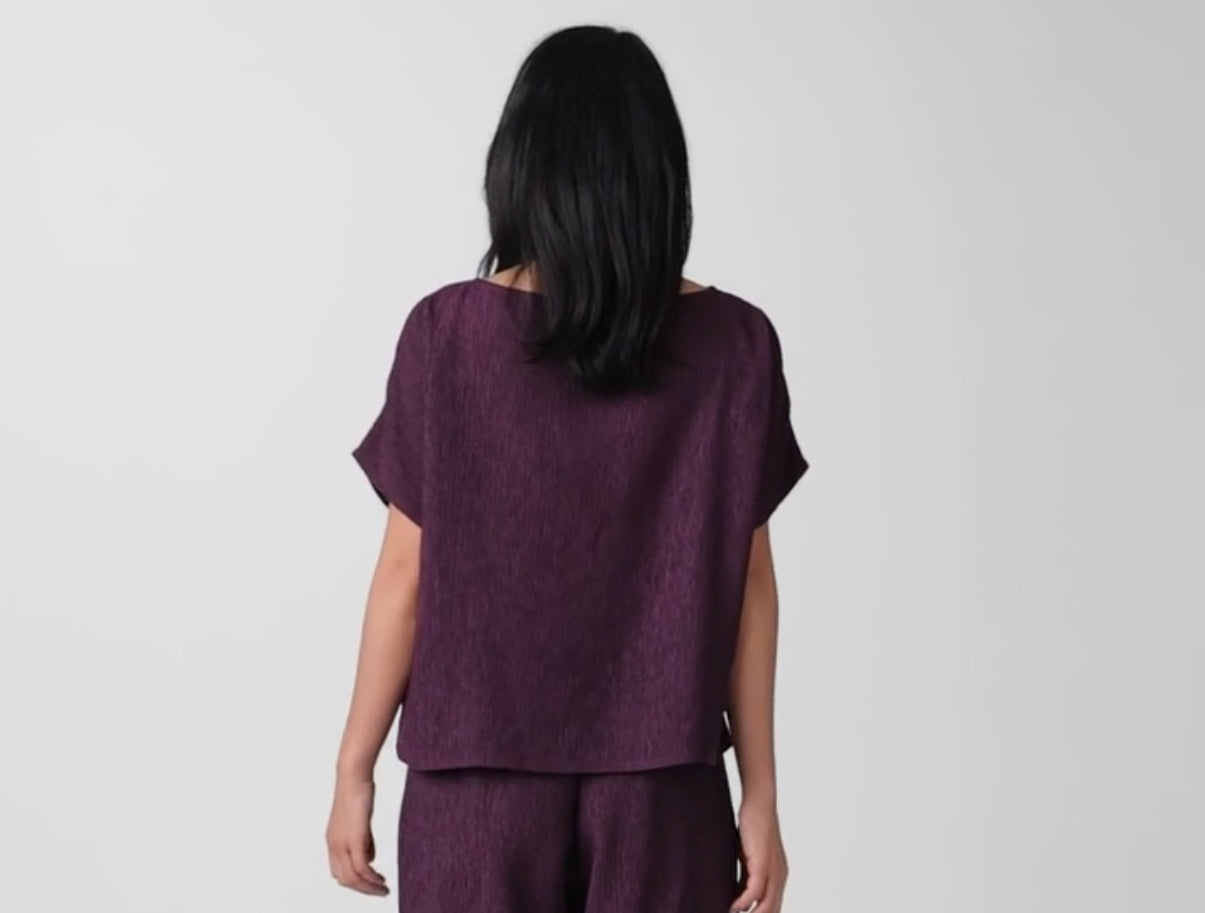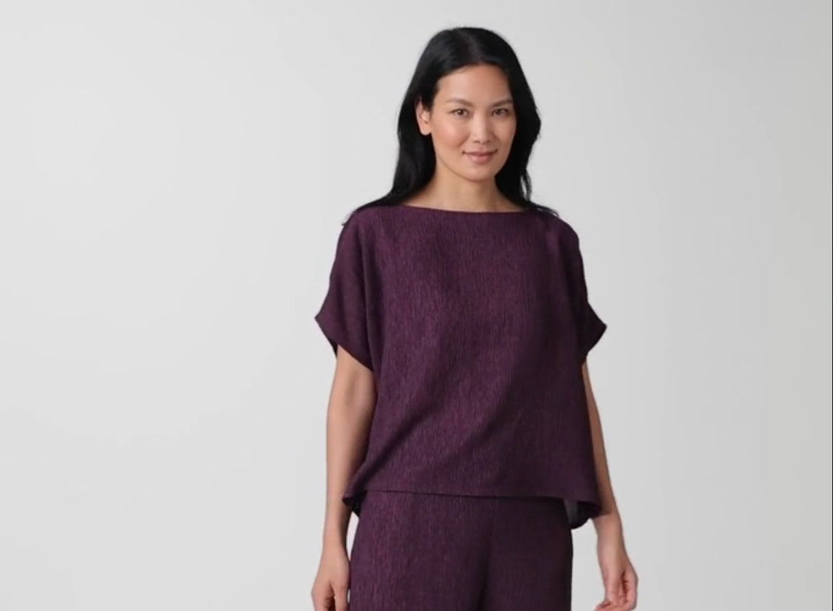 Simple, yet sophisticated. A refined bateau neck top set apart by dolman sleeves, in fluid Woven Plissé. Made in a Fair Trade Certified™ factory.