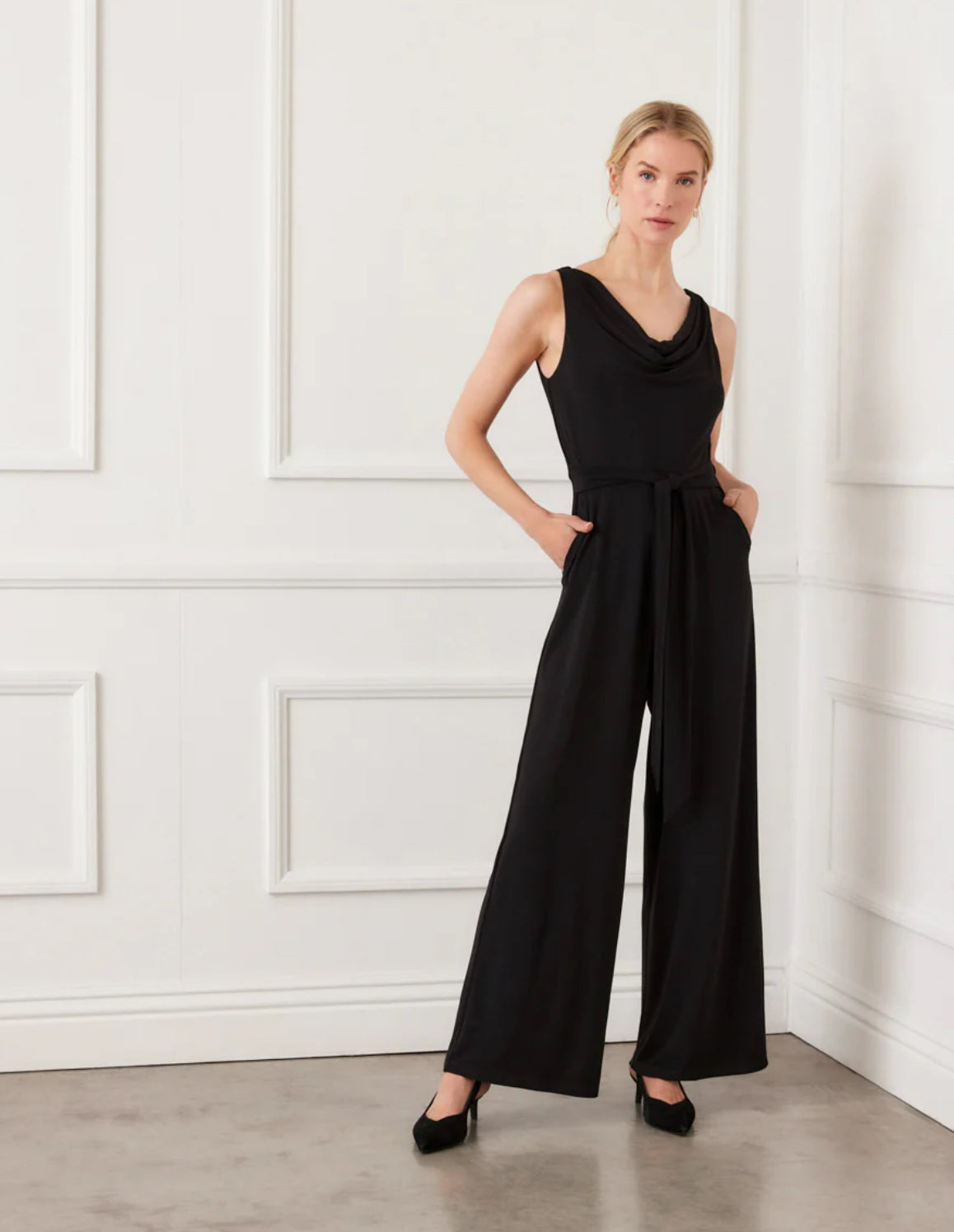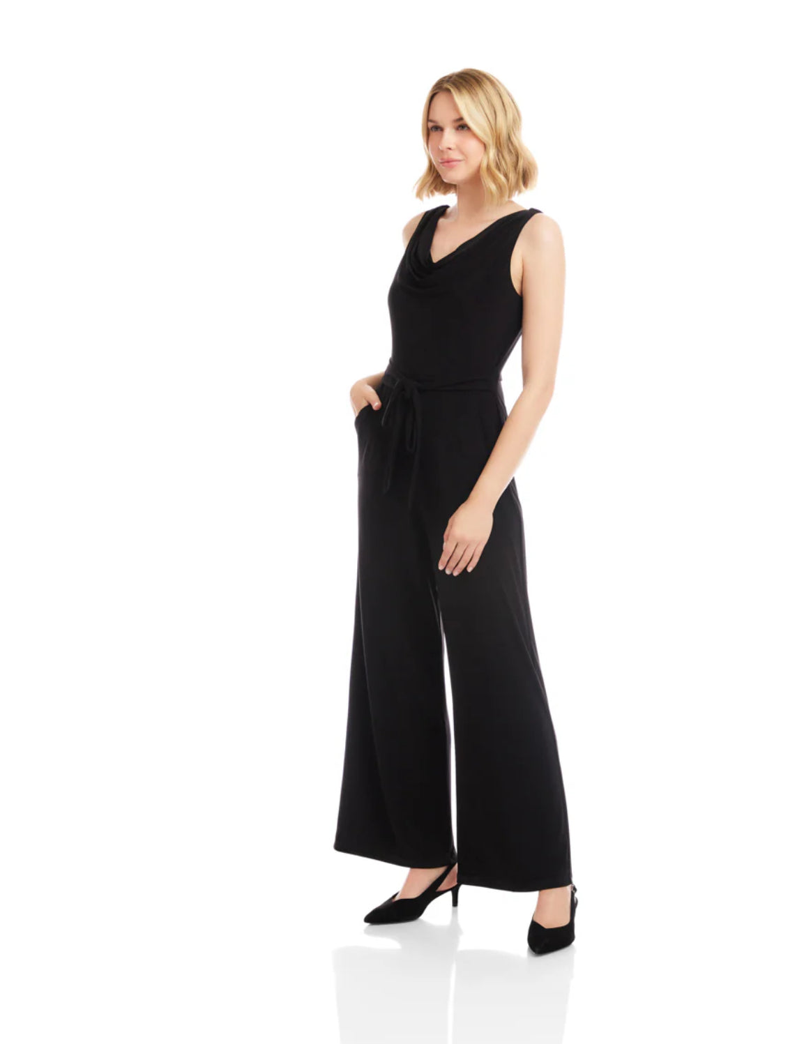 Effortlessly elegant and endlessly versatile, the Camila Travel Jersey Sleeveless Cowl Neck Jumpsuit is crafted from our signature travel jersey fabric. Featuring a flattering cowl neckline and self-tie waist, this lined, full-length jumpsuit is finished with side pockets and a back zipper closure for ease and functionality.