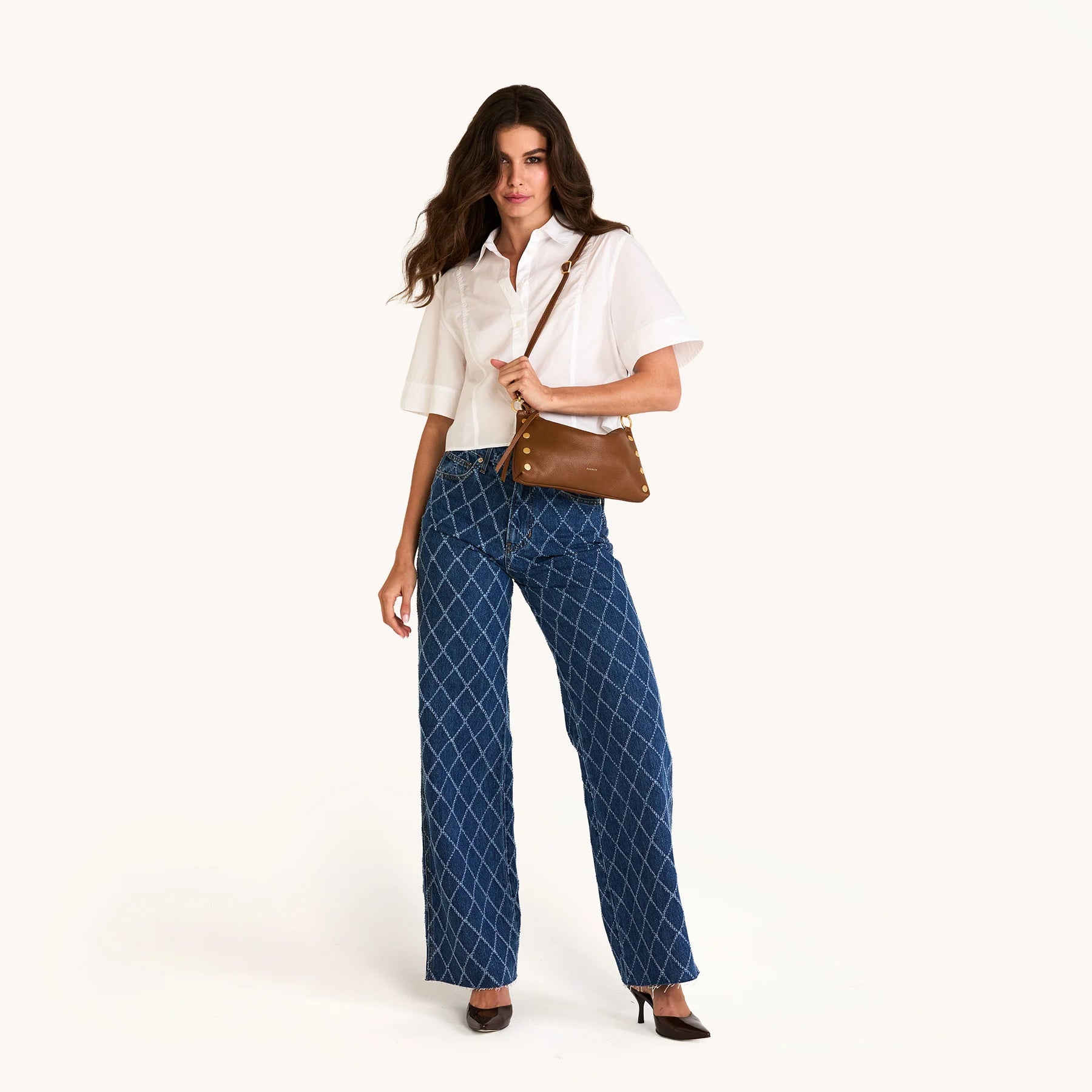 This fresh, of-the-moment bag is entering the chat as a must-have companion for nights on the town. Featuring a slouchy but current shape, this versatile little number transitions from a wristlet to a shoulder bag in seconds flat. The Kyle also includes a removable and adjustable crossbody strap, so you can go hands-free. A cousin of our best-selling mahogany suede collection, this leather features a soft pebbled texture with a hint of shine. Embrace the warm allure of this medium brown hue, enriched with a delicate yellow undertone that adds depth and sophistication to any ensemble.