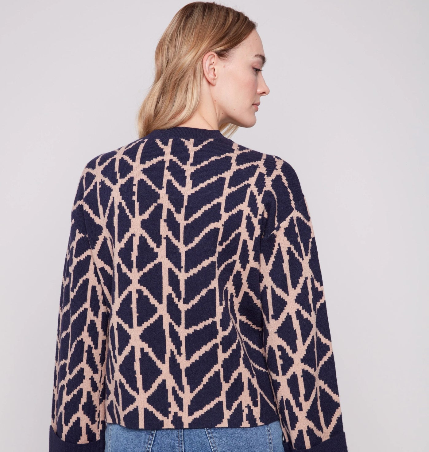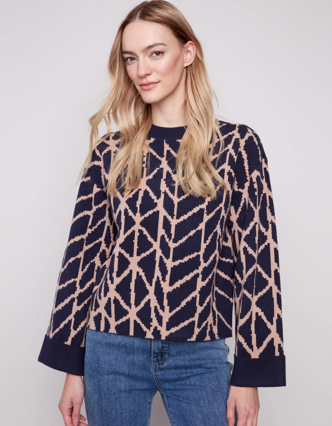 Revamp your wardrobe with our Navy Blue Jacquard Sweater, where elegance meets practicality. Adorned with a refined beige geometric pattern and stylish folded cuffs, this sweater is your go-to for any occasion. Its timeless crew neckline and premium fabric blend deliver exceptional comfort and style, solidifying its status as a must-have layering piece for the fall-winter season.