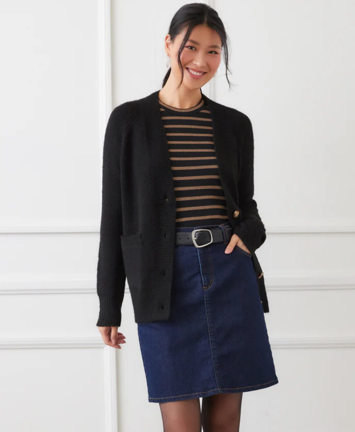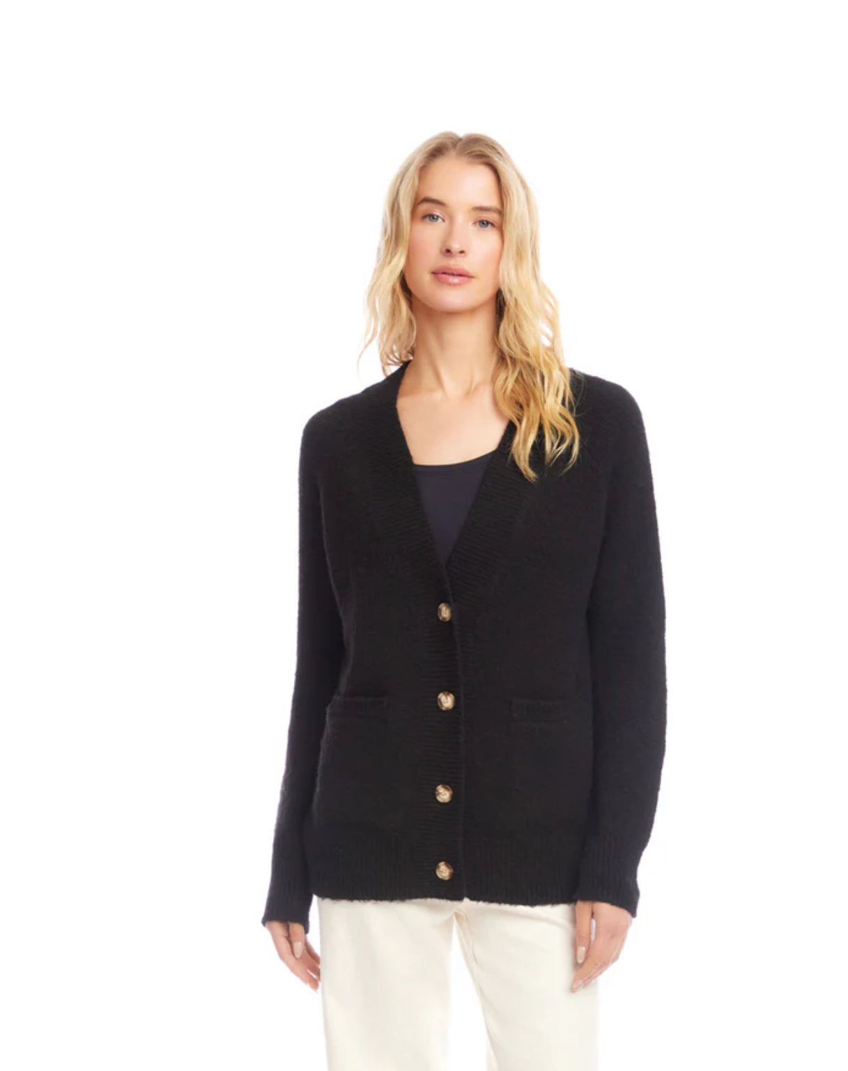 Cozy up in this timeless cardigan sweater, designed with a classic button-front closure that creates a flattering V-neckline, finished with tortoise-like buttons for a refined touch. Raglan sleeves offer a relaxed, easy fit, while two functional front pockets and ribbed edge detailing at the cuffs and hem add both style and practicality to your everyday wardrobe.