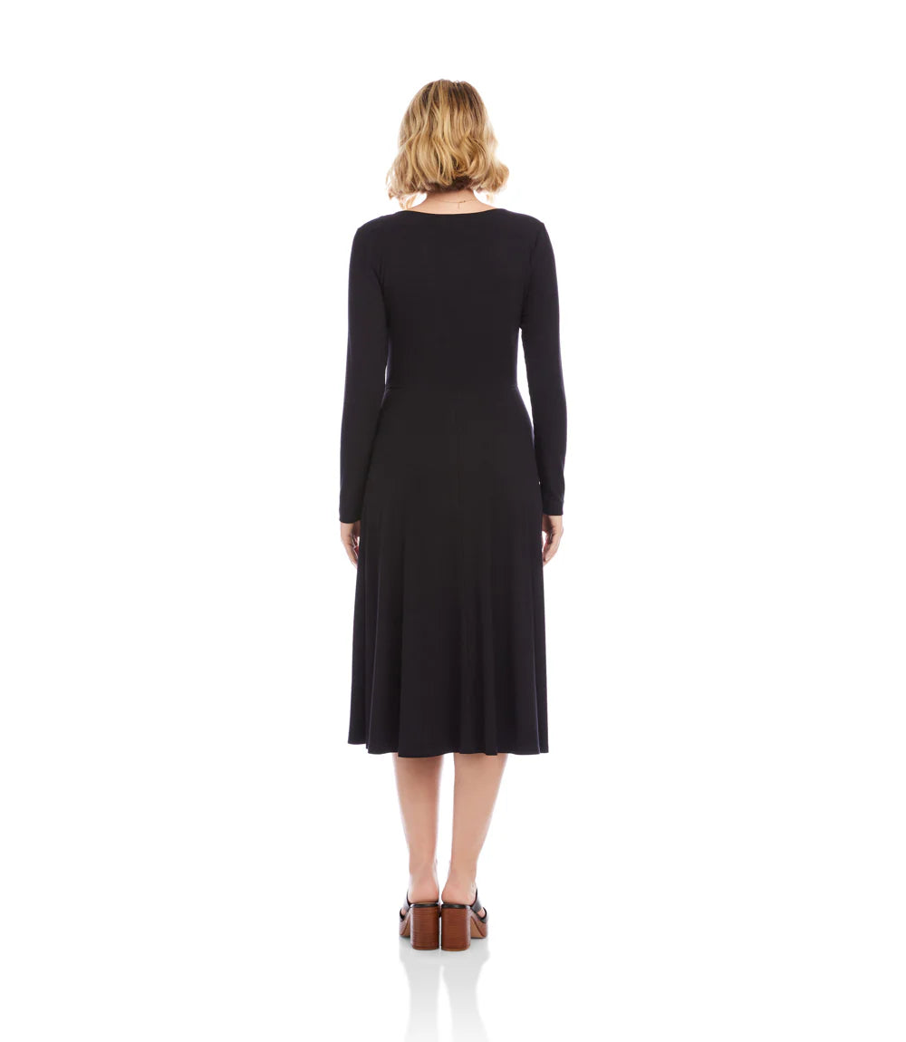 A perfectly balanced rib-knit A-line dress with long sleeves, a flattering scoop neckline, and a softly draped silhouette. Crafted for comfort and ease, it includes side pockets for a polished, everyday look.